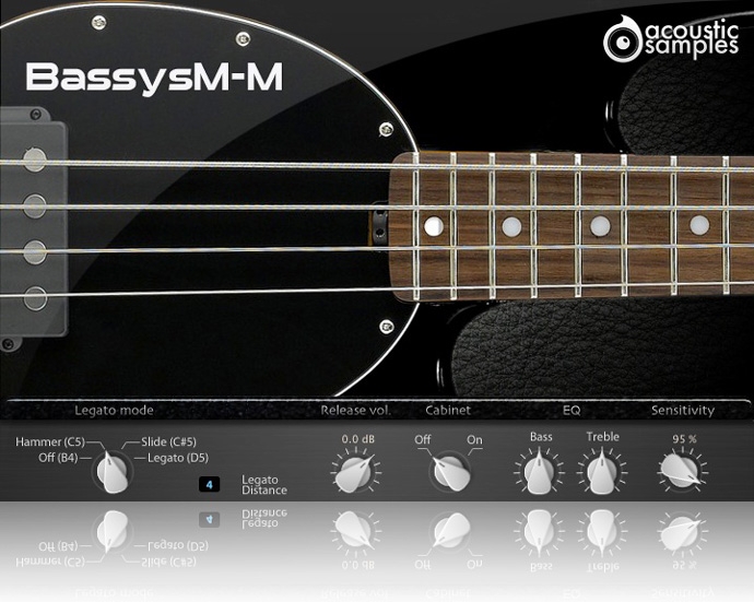 The Bassysm-M bass is a four strings Musicman Stingray bass with roundwound strings.