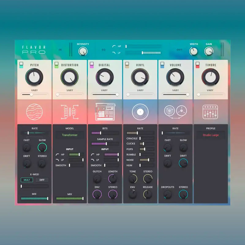 At the heart of Flavor Pro ingredients are 6 powerful effects modules providing immersive Lo-Fi control with unlimited possibilities. Add instant effects such as Pitch Flutter, Tape Saturation, Tape Dropouts, Distortion, Drift to 12/8 Bit sampling, Vinyl rumble, hum, pops & crackle emulations. Whatever your music style, Flavor Pro's powerful multi-effects layout allows instant vintage magic and manipulation on your production in a fast creative way.