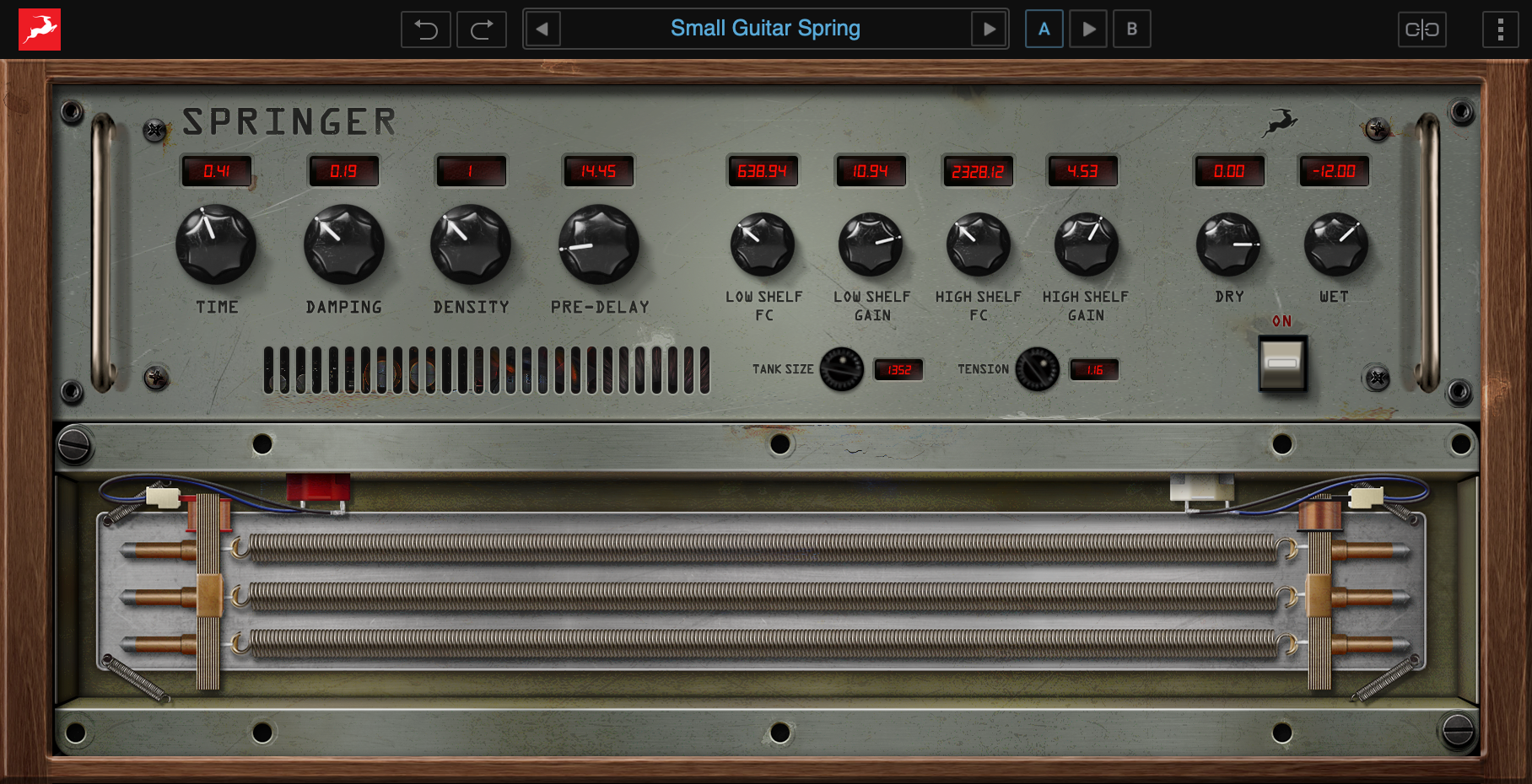 - Adjust the reverb parameters and the spring shape and behavior