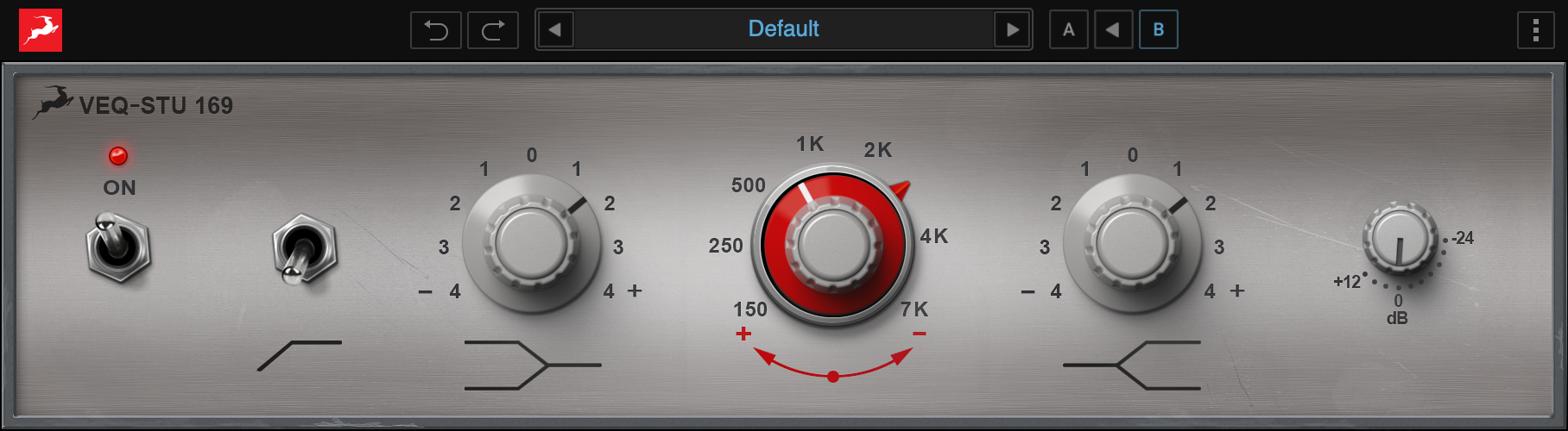Designed for broad tone shaping, the original that inspired VEQ-STU 169 is still used in studios ranging from vintage analog to high-end digital facilities. Both still make the best of its unique analog color. With a low-pass filter and a sweepable bell mode mid-band, you can surely achieve the sound many other EQs can only dream of. The low frequency band is set to shelve at 60 Hz, the mids are sweepable between 150 Hz & 7 kHz, and the high frequency shelving comes at 10 kHz.