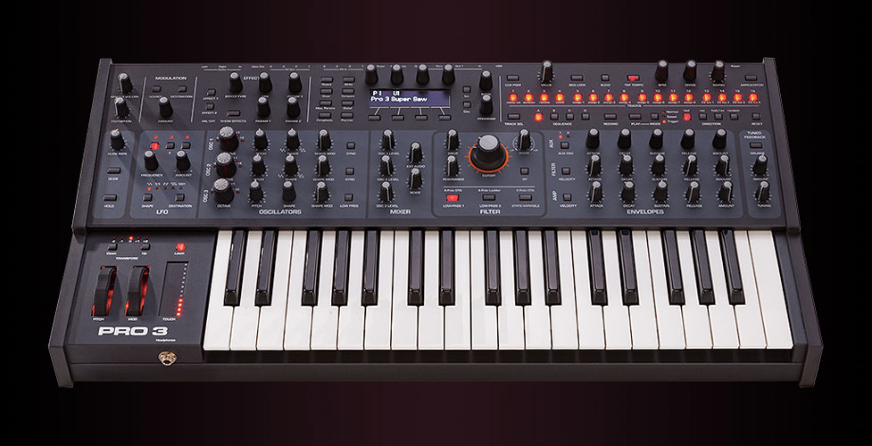 The Pro 3 boasts three oscillators, three vintage filters, three LFOs, four loopable envelopes, a massive 32-slot mod matrix, and a 16 x 16 x 4 sequencer. Throw in dual digital effects and four control voltage ins and outs, and you’ve got a hugely powerful instrument that’s as exciting to program as it is to play.