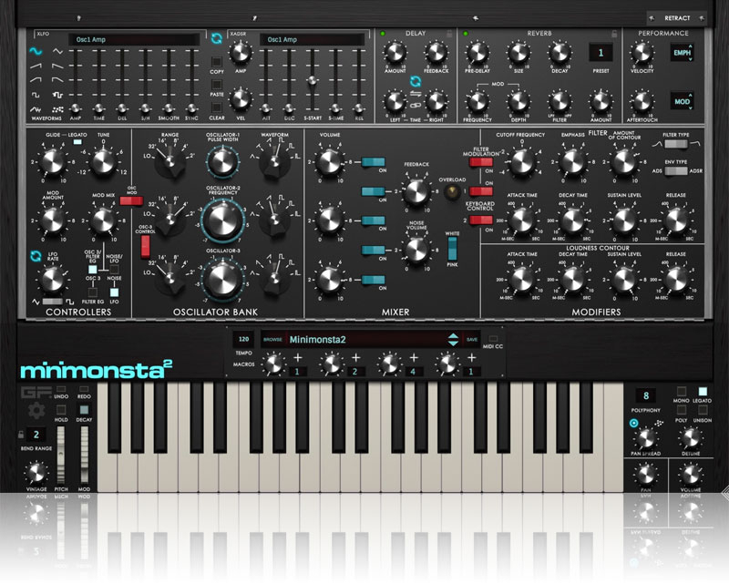 Minimonsta2 features a new fully resizable UI, an improved audio engine, a powerful new Preset Browser, over 300 new presets, a new Reverb effect, a Vintage control for adding subtle analogue imperfections, four programmable Macros, selectable 4-stage envelopes, an alternative bass-preserving ladder filter, PWM for OSC1 and much more. These powerful new features give Minimonsta2 an authentic experience that’s designed for the modern setup.