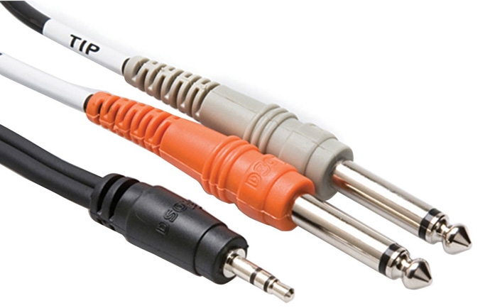 The CMP-153 from HOSA is a 3.5mm TRS to dual 1/4inch TS stereo breakout cable. This cable is designed to connect an audio device with a mini stereo phone output to pro audio gear with unbalanced phone inputs. It is ideal for connecting a portable media player, laptop or similar device to a mixing console.