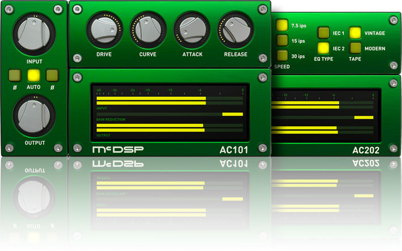 The AC202 configuration emulates analog tape machines. In addition to standard tape machine parameters such as bias, playback speed, and IEC1/2 equalization, AC202 offers controls well beyond the limits of the reel-world devices including adjustable low frequency roll off and head bump - independent of playback speed. The user can select from several playback head types, tape formulations, and even control the tape saturation recovery time.