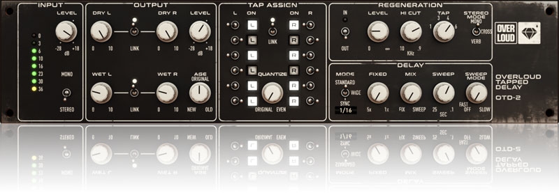 The Overloud Tapped Delay is a recreation of a unique analog processor that delivers modulating tap delays and sound widening effects. 6 analog bucket-brigade delays can be individually switched and panned to create custom delay patterns.