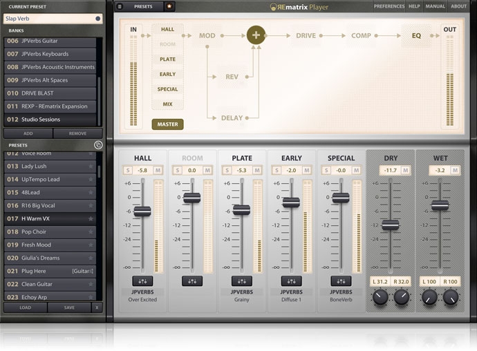 Studio Sessions is a REmatrix expansion library created for deep and natural reverberations. It collects all the best reverb units from the ‘70s through today.