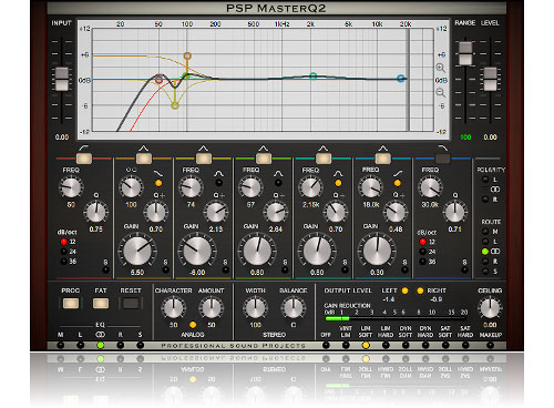 And yes, we can blind you with the technical details: PSP MasterQ2 employs 80-bit extended floating point computations in all filters to deal with accumulation errors. It also allows for optimal filter operation at even the lowest frequencies with high gain and Q factor settings. PSP MasterQ2, uses our proprietary Frequency Authentication Technique algorithm. FAT is a double sampling technique which allows for proper filter operation at the highest frequencies. FAT utilizes high order linear filters to prevent phase errors and linear errors from the audio bandwidth caused by double order sampling. This technique results in double sampling without sample rate conversion artifacts.