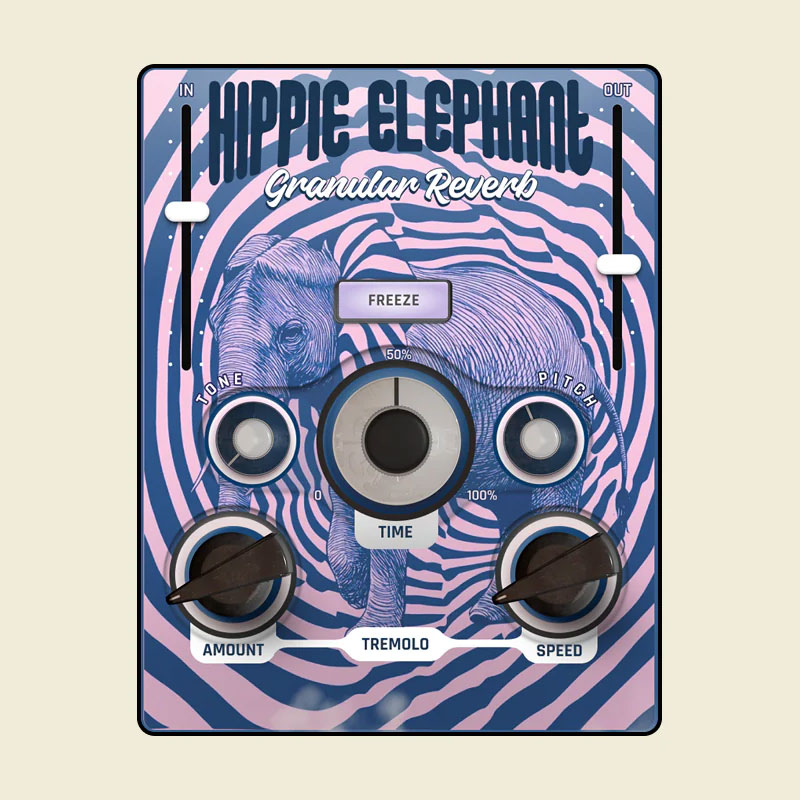Hippie Elephant is our dreamy, warbly granular reverb a swirling cloud machine that freezes, shimmers, and melts your audio into psychedelic textures. Shape the grain size with TIME, bend the space with PITCH, darken/brighten with TONE, and ride a built-in TREMOLO for hypnotic movement. It’s instant vintage-sci-fi ambience for guitars, vocals, synths, and beyond.