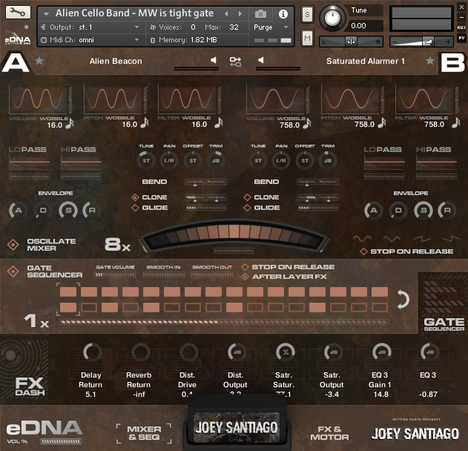 Joey Santiago contains a variety of multi sampled instruments recorded and performed by the man himself through his favoured guitars, his fabled board and his much toured amp rig. We then re-amped the whole thing back in London’s super cool Pool Studios. In addition to the multi sampled virtual instruments we also captured hours of Joey shredding, gating, twisting and distorting into the raw materials for new sonic adventures. Finally, this raw material was taken to Christian Henson’s new ‘warp room’ on the edge of an extinct volcano in Scotland for further sound bending.