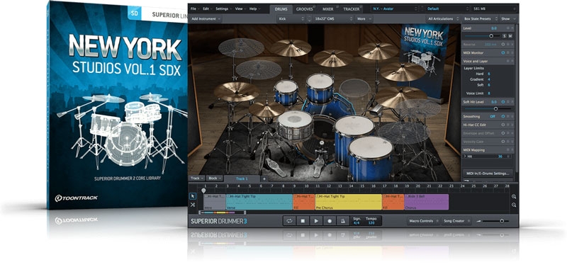 In total, you get approximately 20 GB of raw, unprocessed drum sounds captured in meticulous detail in one of the most acknowledged drum rooms in modern music history. These classic drum tones have over the years seeped through to almost every facet of the music industry. In fact, you likely hear them on a regular basis in TV features, movies and top productions, regardless of where in the world you are. This goes to show that properly captured quality drum tones never get old, worn or dated. Combined with the powerful sound shaping tools of Superior Drummer 3, this collection of drums offers some genuinely raw and unadulterated creative power. Welcome to New York and the Avatar Studios.