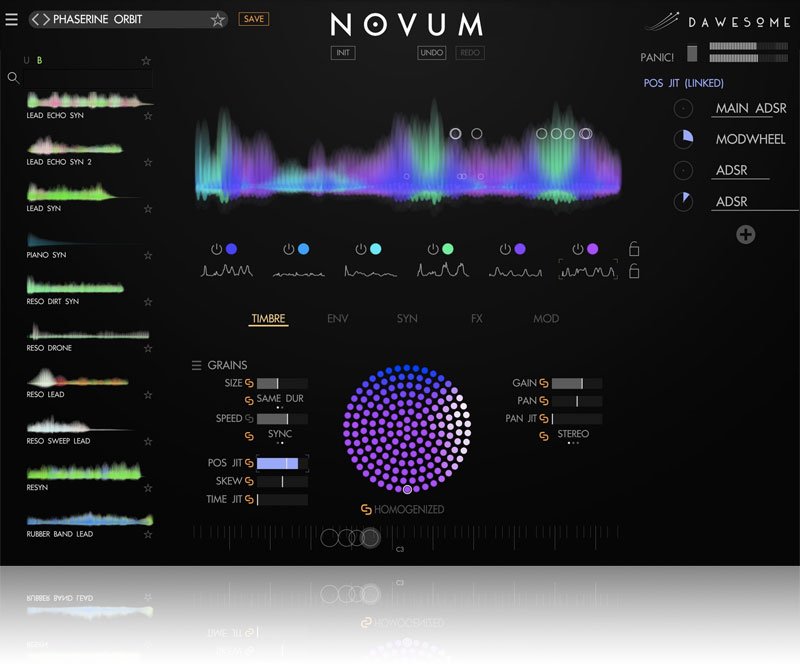Shimmering sound particles, sonic glitter and a good measure of acoustic fairy dust - granular synthesis renders even the mundane beautiful. Speed and pitch are independent, plus you can sync the grains to your DAWs tempo to create pulsing rhythms. Novum's unique HOMOGENIZE feature allows for smooth, velvet-like textures that are hard to create with classical granular synths. Add to this the immense power of six granular layers and you have sounds bigger than life.