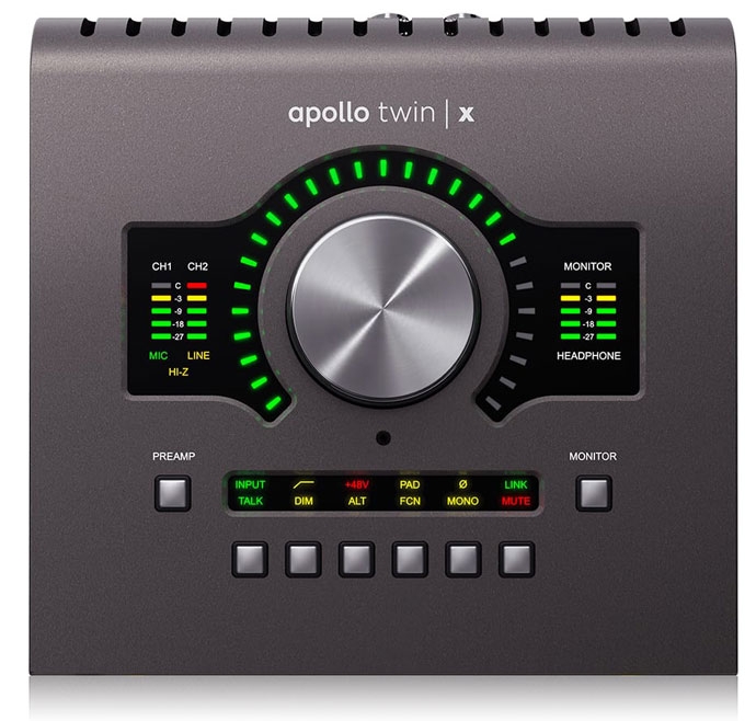 Apollo Twin X allows musicians and producers to easily track, overdub, and mix with elite-class A/D and D/A conversion, two Unison-enabled preamps, and available DUO or QUAD Core realtime UAD plug-in processing — all in a desktop Thunderbolt 3 audio interface for Mac and Windows.