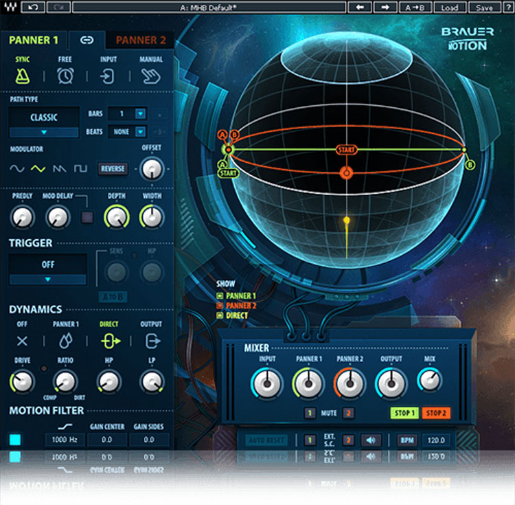 This super-creative plugin comes with four different panning modes to direct the motion of the sound; four different trigger modes for a variety of on/off options; two panners with full control; a dynamics section; pre-delay, motion filter, and precise control over the speed, width and depth; and a master section with gain and wet/dry controls.